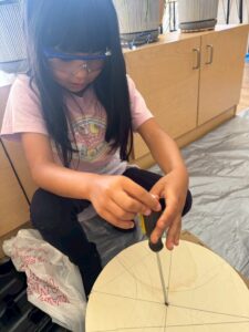 ・コンパスと分度器を使って、円の中心を正確に取り、穴を開けるという高度なチャレンジにワクワク!